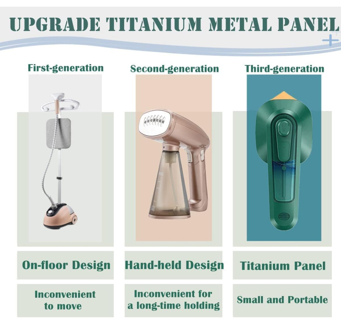 【Upgraded Titanium Metal Panel】 - The steam iron for clothes uses a large titanium panel, irons at a constant temperature of 302℉, quickly preheats, and irons smoothly. It can easily penetrate every fiber in the clothes so that the clothes can quickly recover as new, even the precious fabrics can be carefully taken care of without damaging the clothes.